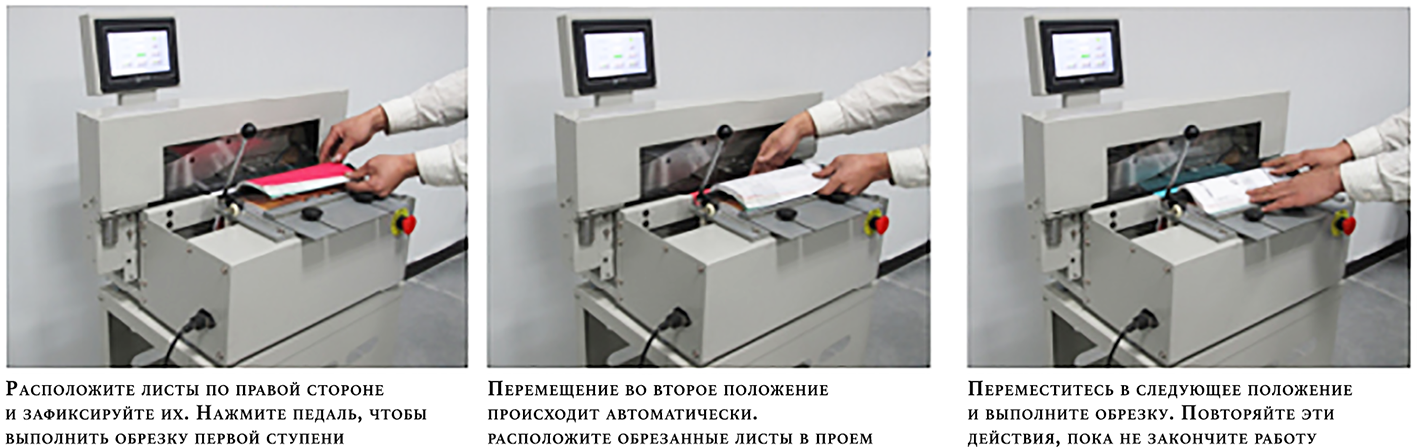 · Использование педали. Возможность выбора положения по умолчанию в автоматическом режиме или ручное управление положением обреза